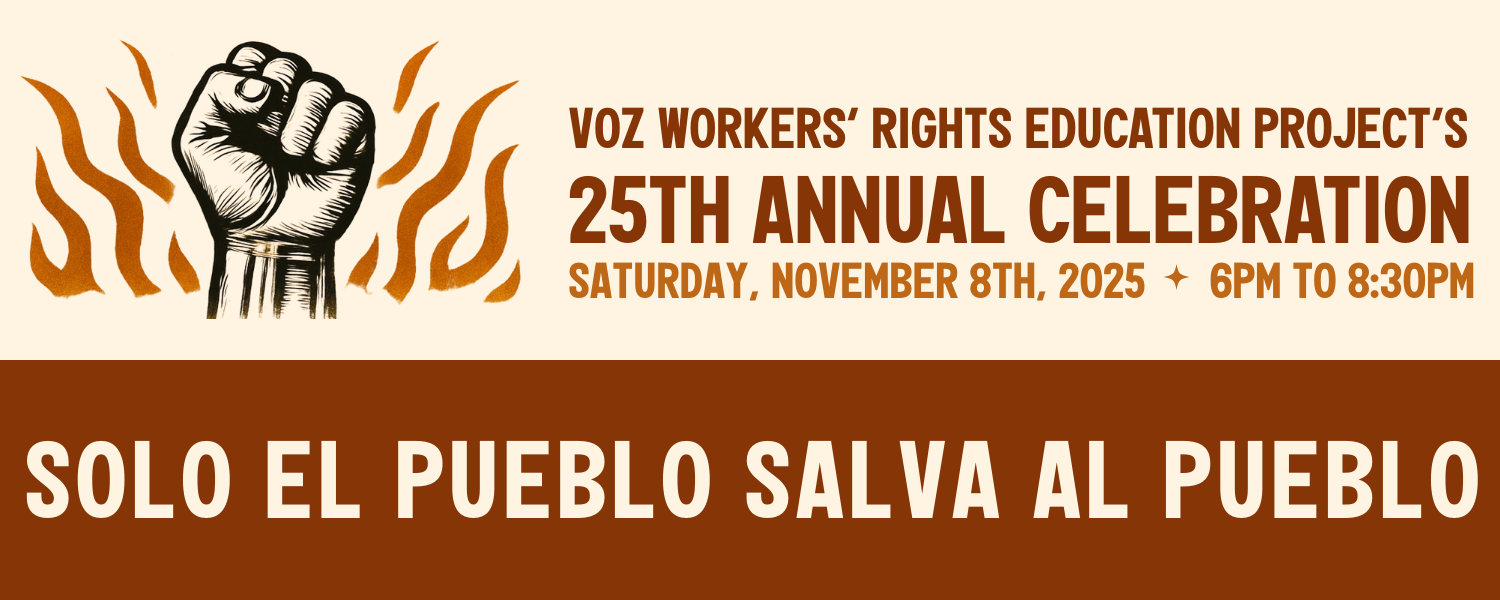 For 25 years, Voz has stood with immigrant workers, proving again and again that solo el pueblo salva al pueblo. This fall, we invite you to join us for our 25th Annual Celebration, a night to honor resilience, resistance, and the power we build together.